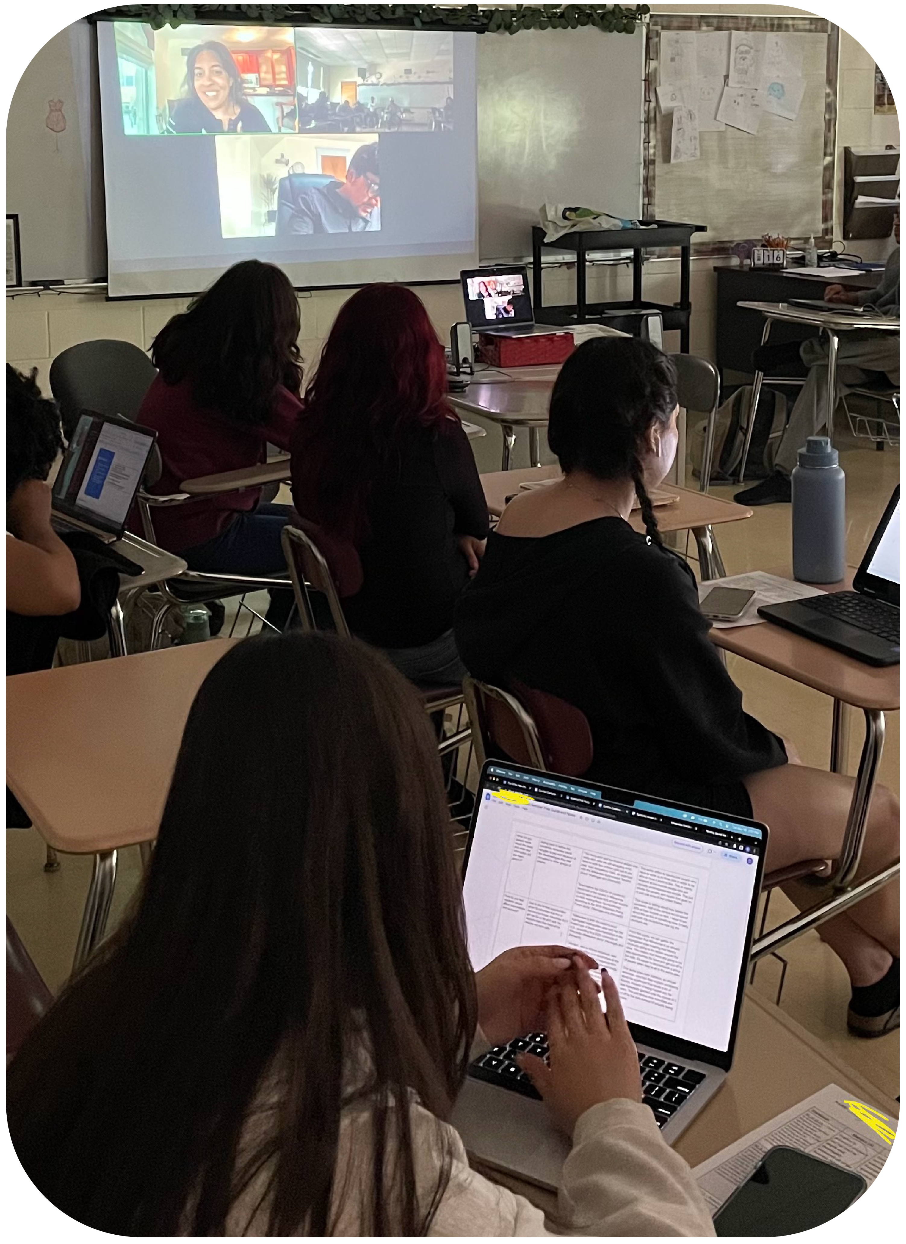 Most virtual visits are conducted in English, but we have also supported several visits in Spanish, including for native speakers and non-native learners of Spanish. For every virtual visit, we also ask if your students require any accommodations, including for language and pacing. In Zoom meetings, for example, we can enable live transcription.