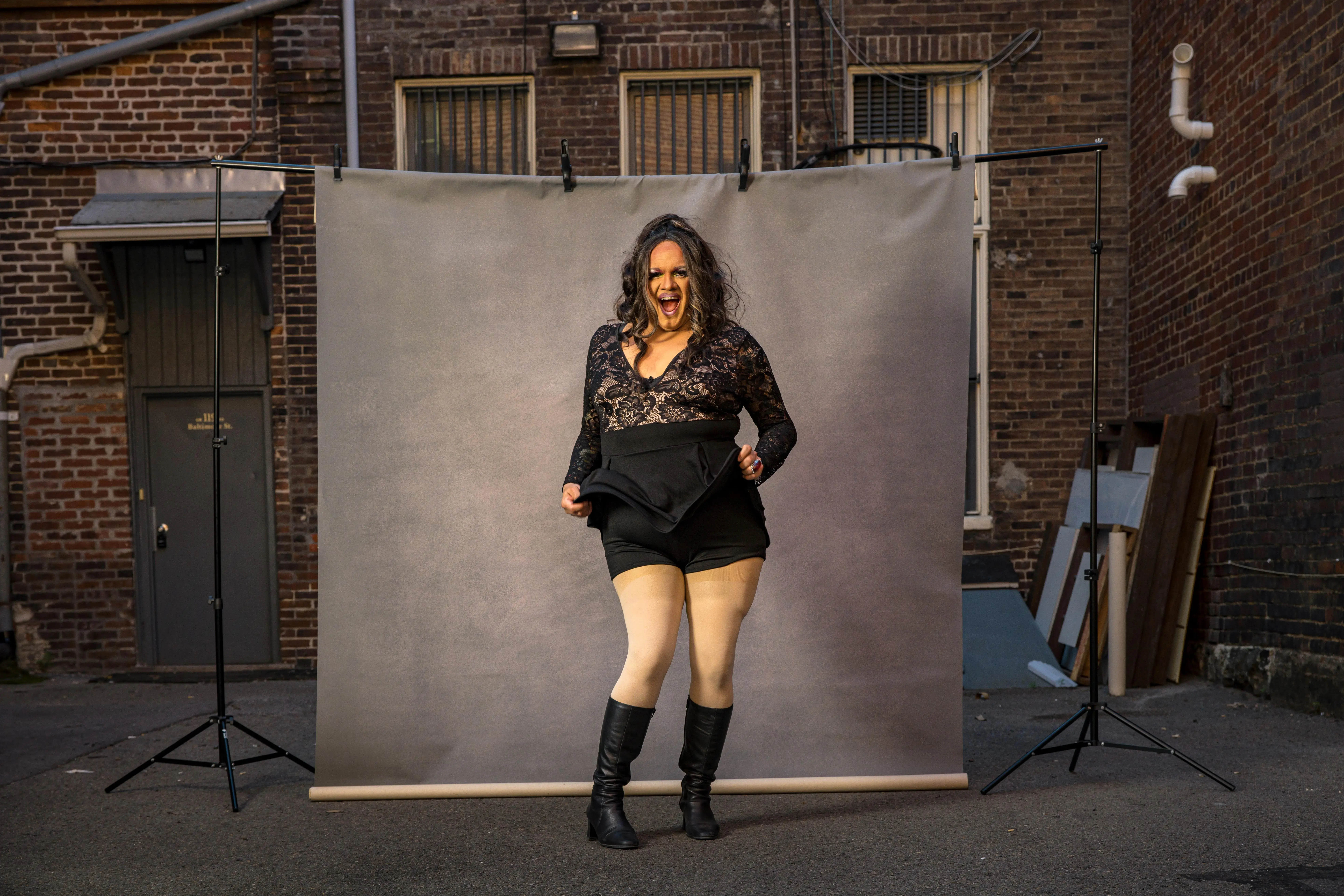 The problem is, I still barely know my way around. I lead Envy Divine, Violet LaFay, and Mona Lott on a wild-goose chase, searching for the right alley but only getting us all lost. My phone is dead after a day of recording videos, so I can’t call Mike. Mona is still in heels. I’m apologizing profusely. In the end, though, we make it, and framed by four-story brick buildings on either side, the queens somehow find the energy to flirt and strut for Mike and his camera. Those who aren’t in the spotlight sit on cement steps nearby, chatting and rubbing their sore feet. I join them on the pavement. We’re all tired but grinning. The sound of our laughter bounces between the buildings.