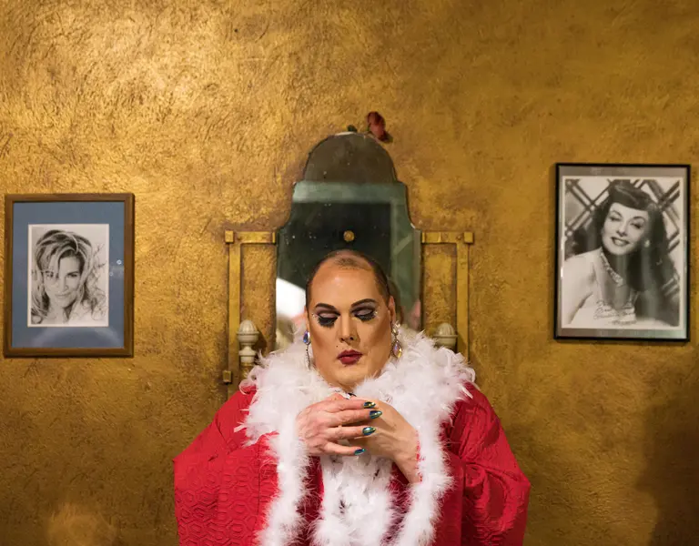 I’ve been invited to town by Mike Snyder, a photographer raised just up the road in Frostburg, Maryland, who’s been working to document Cumberland’s drag queens for nearly a decade. In 2011, while home visiting their parents, Mike and his sister went to a drag show at Cumberland’s Embassy Theatre and were blown away by the thriving drag community in town—the energy and charisma of the queens, the robust and adoring audience, none of which he’d imagined were possible in the conservative and largely rural county where he was raised.