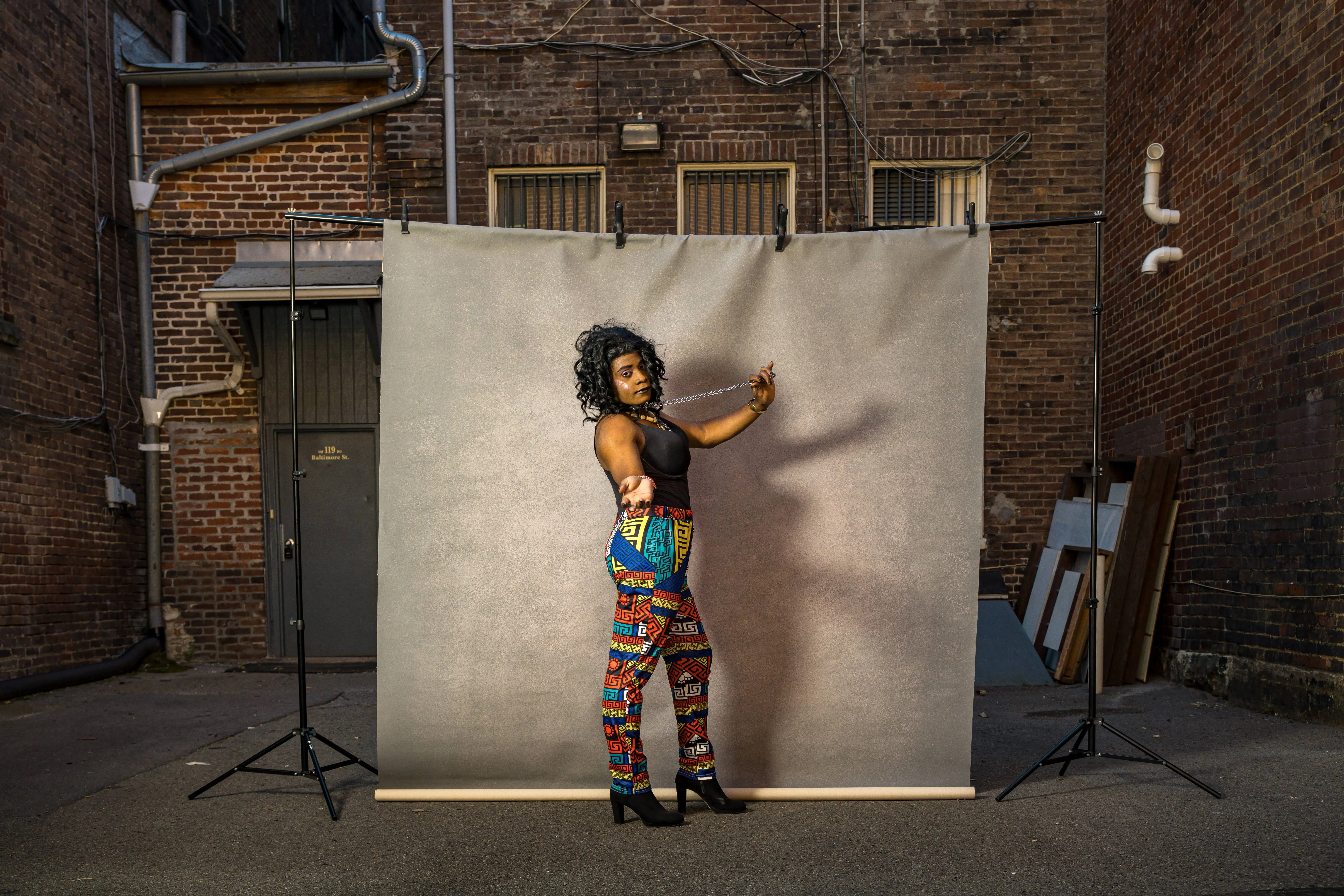 It’s Friday, June 3, 2022, and what is likely Allegany County’s first-ever ballroom event is about to start inside the Stephanie Ann Roper Gallery at Frostburg State University, just up the mountain from Cumberland. The ball is hosted by Kijana West, a New York City–raised African American queer woman in her late forties whose family goes back generations in western Maryland. She spent summers here with her great-grandmother, remembers her uncle playing the banjo, bountiful gardens, the joy of running around outside with her cousins. Back in New York in the early nineties, a new mother at sixteen, Kijana began claiming her queerness and got involved with the vibrant ballroom scene birthed by Black and Latinx queer and trans youth, many of whom were homeless after being kicked out by their families of origin. Out of survival and love, they reinvented family by way of ballroom houses.